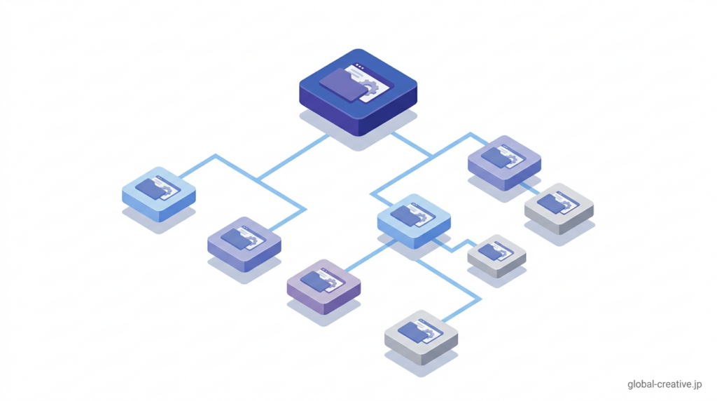 Google広告MCC(マネージャーアカウント)は、1つの管理アカウントの下に複数のGoogle広告アカウントを紐づけ、階層構造で管理する仕組みです。最上位にMCCがあり、その配下に個別の広告アカウントをリンクさせることで、1つのログインで全アカウントにアクセスできる状態になります。