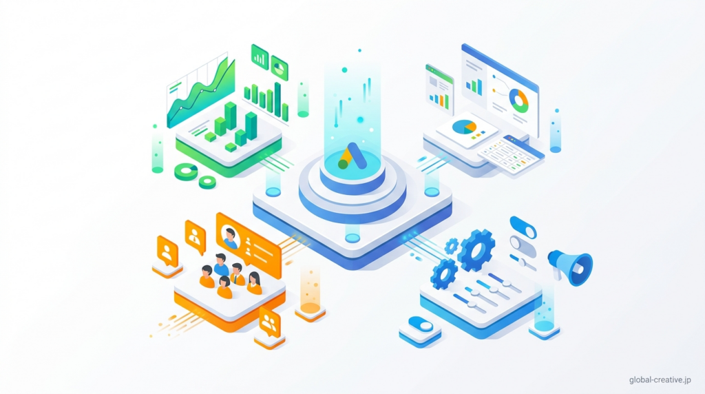 Google広告アカウントは、1つの広告運用単位として作成され、1つのアカウントごとにログインして管理します。広告の作成や予算設定、入札単価の調整、配信結果の確認はそのアカウント内で完結し、別のアカウントを操作する場合はログインを切り替える必要があります。