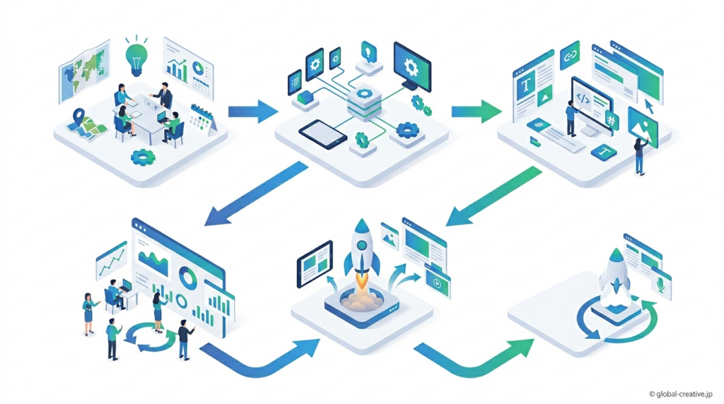 その後、広告グループとキーワードを設定し、実際に検索される語句に対して広告が表示される状態を作ります。最後に配信開始を行うと、設定した条件に基づいて広告が表示され、クリックや問い合わせ、購入といった成果につながります。最初に選ぶ目的とキャンペーンタイプが後の設定全体に影響するため、最終的に増やしたい数値を基準に判断して進めることが重要です。