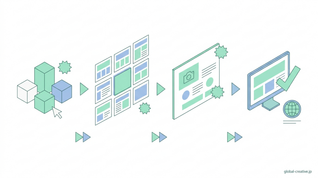 ホームページ作成は、「何から始めればいいのか分からない」と感じやすいですが、流れ自体はシンプルです。