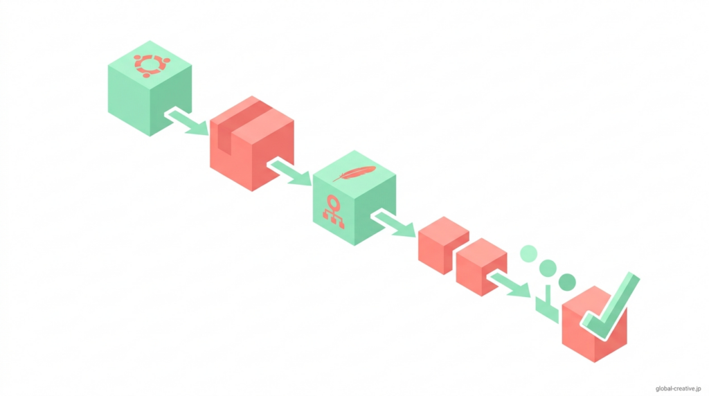 UbuntuでWebサーバーを立てる流れは、大きく分けて「インストール → 起動 → 表示確認」の3ステップです。