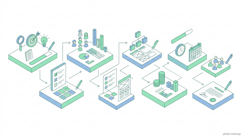 Webサイトの企画書は、思いついた内容をそのまま書き出すのではなく、「何のために作るのか」「誰に届けるのか」「どんな構成にするのか」を順番に整理して書くことで、一貫した内容になります。
